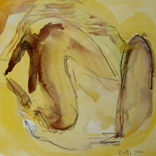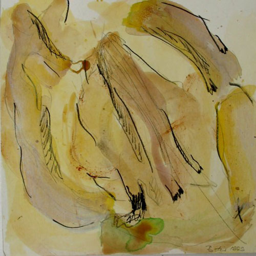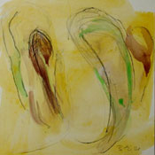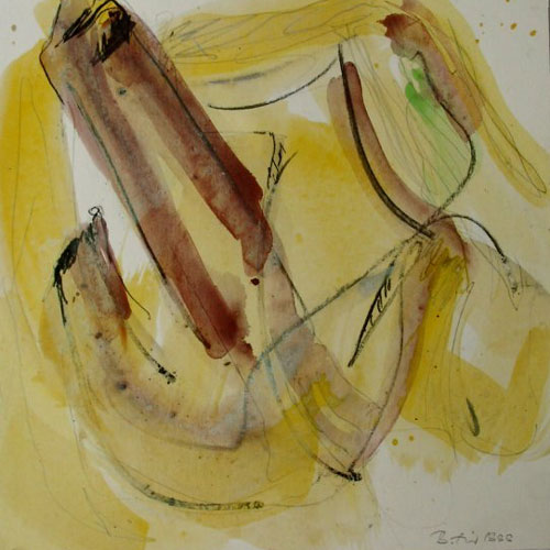 diese serie von kleinen aquarellen (insgesamt 15) auf karton entstand 1999. alle haben die grösse 30 x 30cm und sind auf museumskarton gemalt, der eine besondere farbverteilung zulässt. mit gleichen grundfarben, mit bleistiften und kohle angereichert...