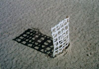 die reihe netze-skulpturen: entstand 2001 am odexeiche-beach. hier eine serie mit netzen: kleine gleichartige fundstücke im inszenierten schattenspiel eines grossen skulpturengartens....